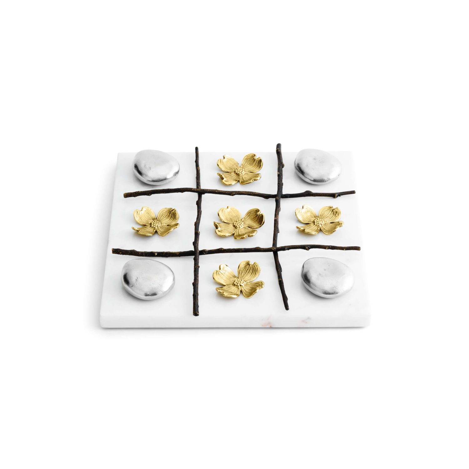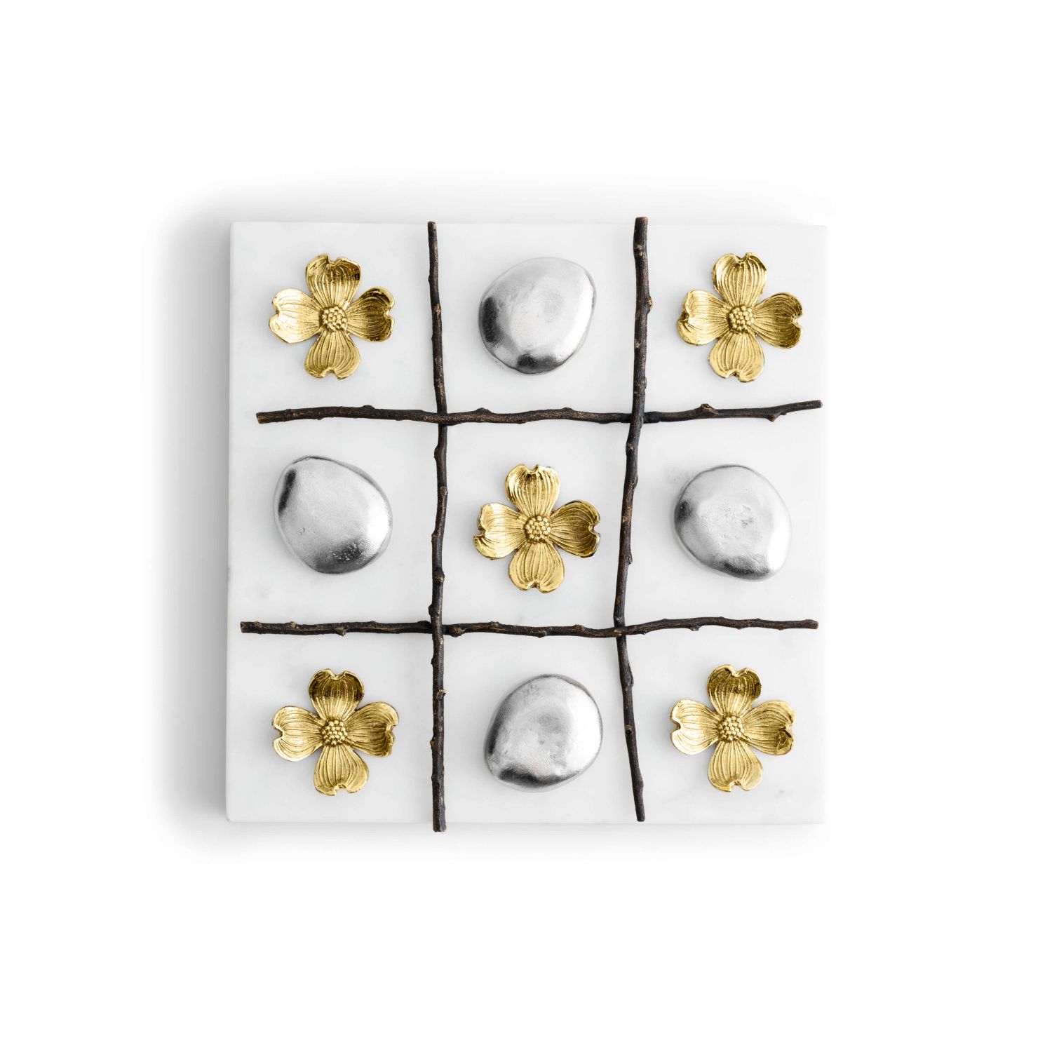 Ce jeu de morpion de la collection Flights of Fancy signé Michael Aram marie esprit ludique et élégance artisanale. Chaque pion – fleur dorée ou galet argenté – est sculpté avec finesse à la main, apportant raffinement et sophistication à votre table basse, console ou coin détente.